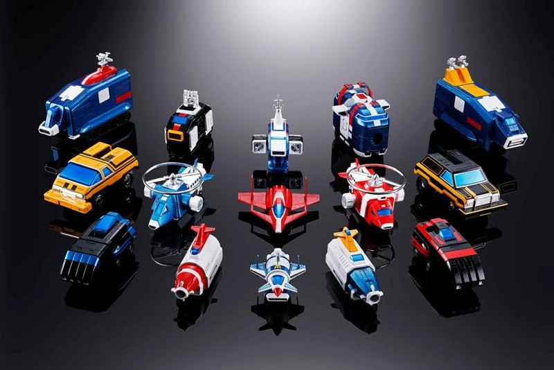 Fifteen vehicles combine into one massive robot! A long-awaited Soul of Chogokin edition of the globally popular super robot, it faithfully forms into the three Air, Land, and Sea Team combat modes as well as the towering Dairugger XV!