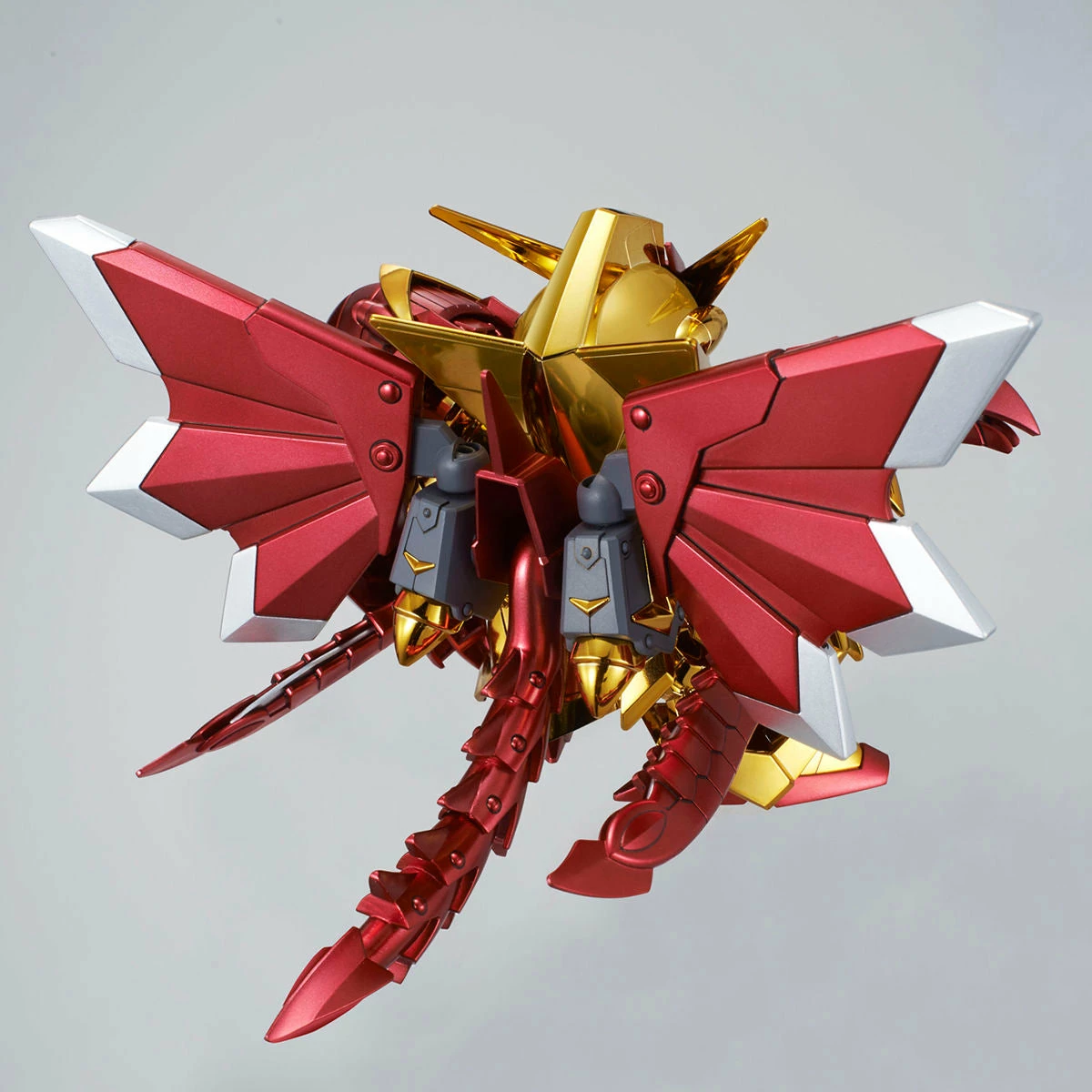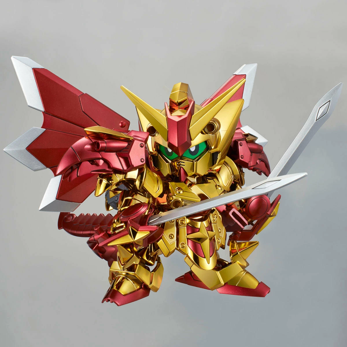 The 400th release in the SD Gundam line, the Knight Superior Dragon has been faithfully recreated in electroplated shiny gold plastic. Able to convert between knight and dragon forms, the release incorporates the advancements made into higher end SD releases. Wings are flexible through ball joints and parts of its body can be combined to recreate various weapons like a large bow.