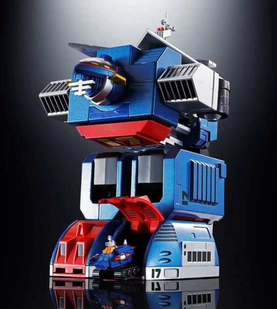 Soul of Chogokin GX-101 is none other than DAITETSUJIN 17! This classic hero from live-action television joins the Soul of Chogokin series. He ransforms into fortress mode and flight mode, just like the series — plus this figure features Graviton Cannon in the stomach, just like the vintage Chogokin toy. The light-up eyes makes this Daitetsujin a faithful recreation of the TV character.