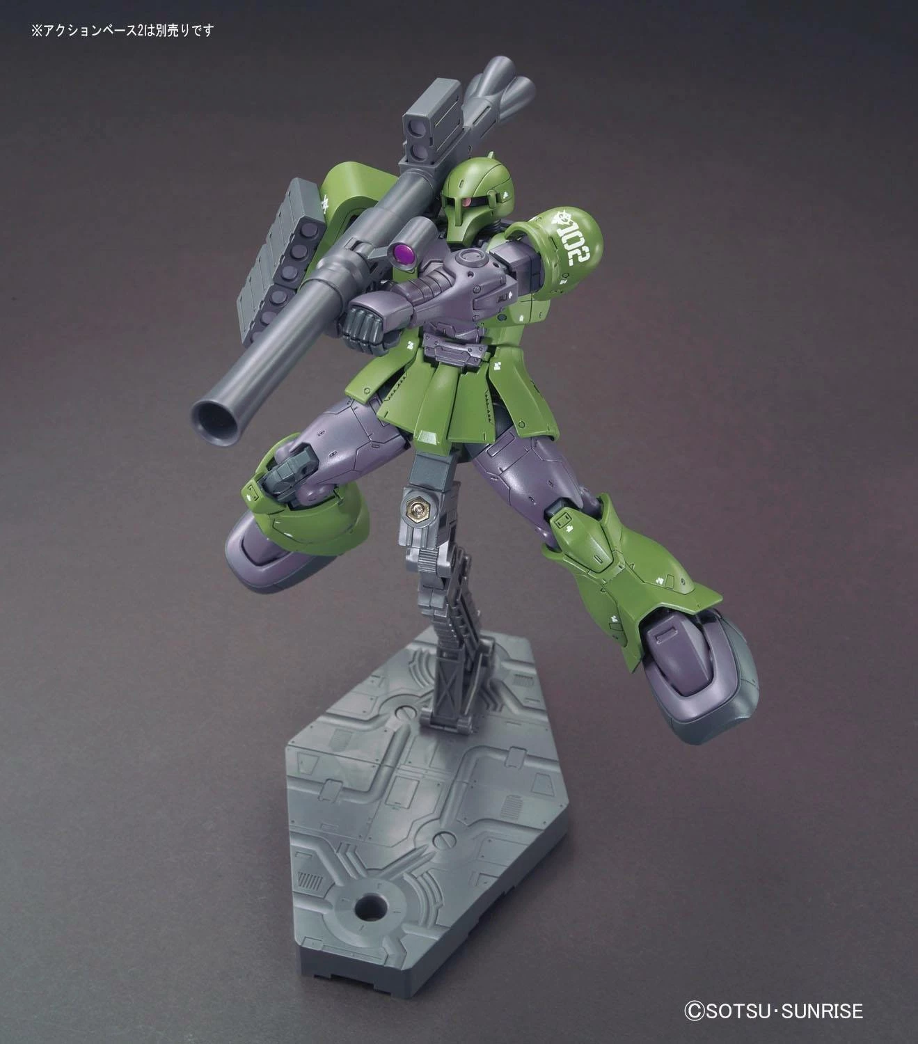 The Zaku I as used by Denim and Slender from the animated adaptation of “Gundam The Origin.” Kit comes with parts to build either pilot’s personalized machines. Weapons include large anti-ship rifle, bazooka with interchangeable cartridges, zaku machine gun, and heat hawk in sheathed and battle-ready forms. Weapons can be mounted on the body through various hardpoints.