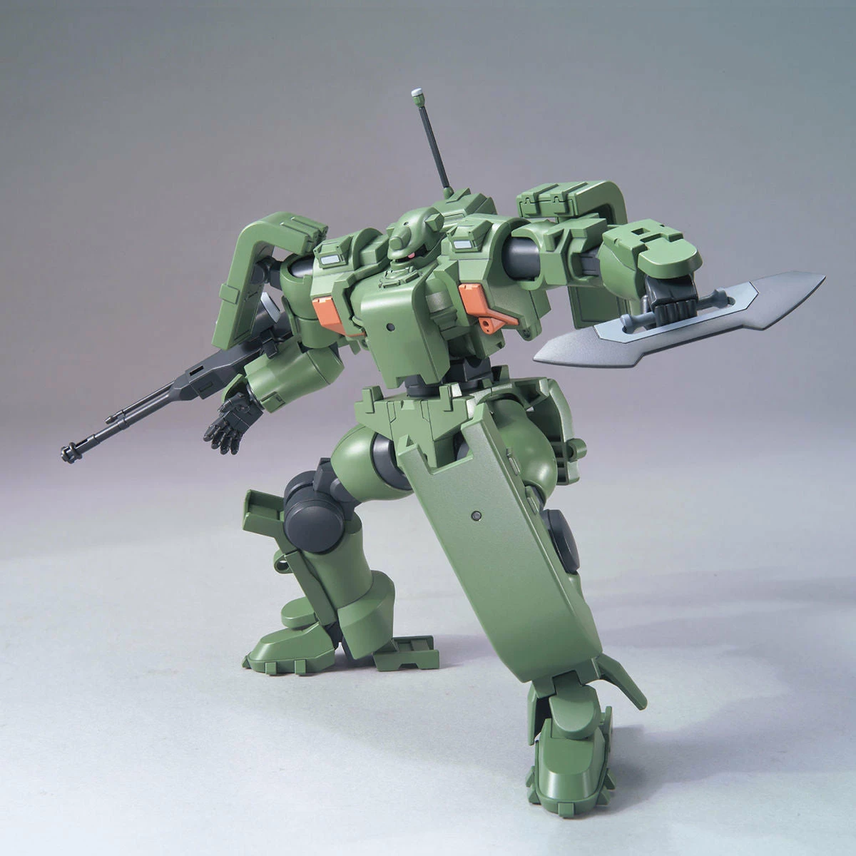 The main mass production mobile suit of the People’s Revolutionary Allied Forces “Tieren” from Mobile Suit Gundam OO is now available in the HG series. The military-inspired character has been reproduced in a highly detailed modeling style! Double ball joints are used for the hip joints, allowing for vertical movement. To further enrich the posing of the figure, an expressive hand is also included to allow for more poses. A large rifle can be attached to the left and right arms for exclusive armament. Shoulder mechanism uses ball joints to reproduce a variety of flexible action poses.