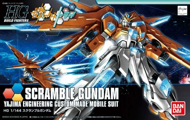 The Scramble Gundam was built by Yajima Trading as a test for a new battle system in “Gundam Build Fighters Try Island Wars.” This kit is molded in color (orange, white, clear blue, clear pink and yellow) so painting it is not necessary, although adding some paint will help make it look even more stunning! It can assume its Flight Mode, and the clear blue panels really make it stand out!