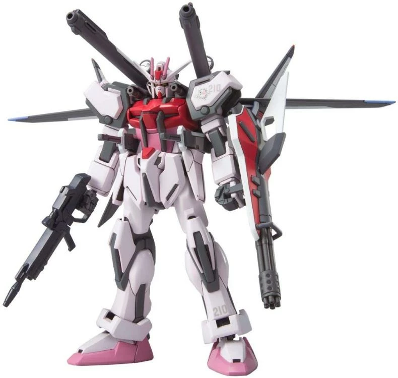 Based on the Mobile Suit Gundam SEED anime, the Strike Rouge IWSP model kit is in 1/144 scale and becomes a fully articulated figure once complete. The Strike Rouge IWSP includes overhead cannons, beam rifle, gattling shield, beam saber, and 2 side mounted swords. The Strike Rouge itself has been molded in the pink colors used by Cagali during the final battles of Gundam Seed. IWSP pack can separate and is compatible with other Strike “HG SEED” 1/144 models.
