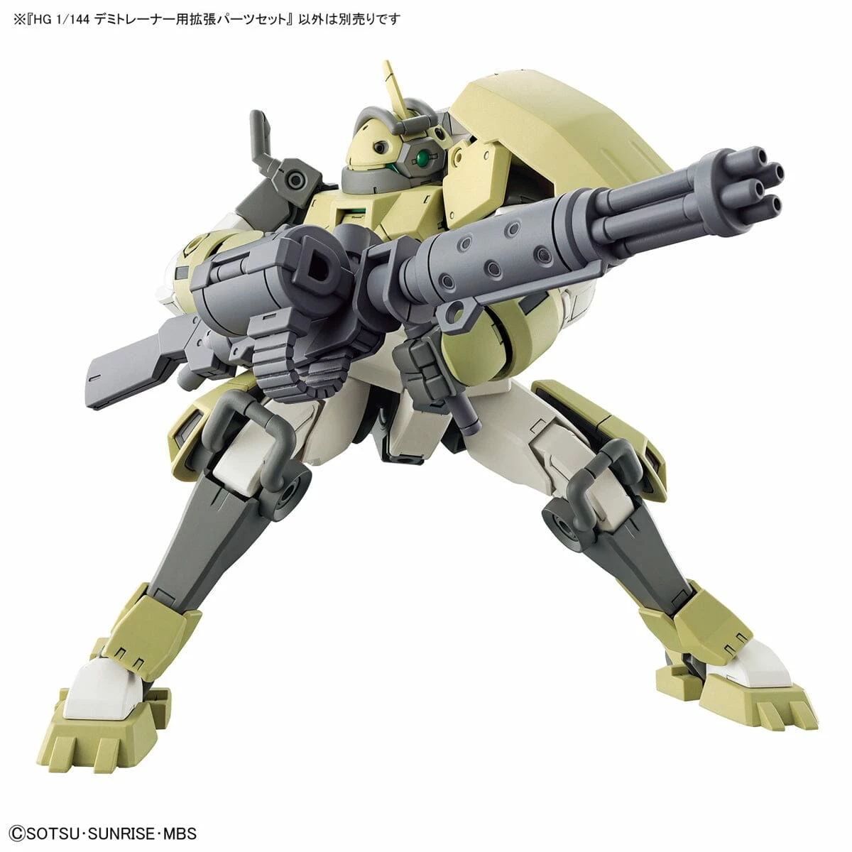 Add onto the Demi Trainer model kit with this matching 1/144 scale expansion set! Part of the High Grade Era model kit line, this set includes pieces to a beam rifle and Gatling gun while also including a combat knife, drill parts, missile launcher parts, and round saw parts.
