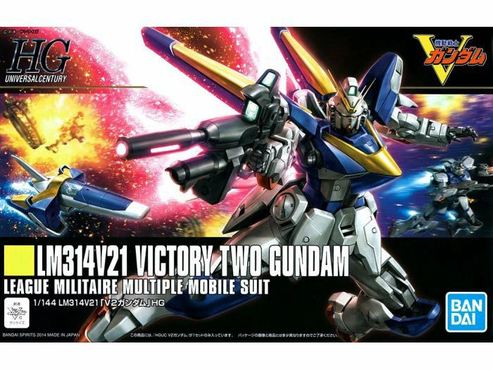 Based on the Mobile Suit Victory Gundam anime, this LM314V21 Victory 2 Gundam model kit is in the 1/144 scale and becomes a fully articulated figure once built.