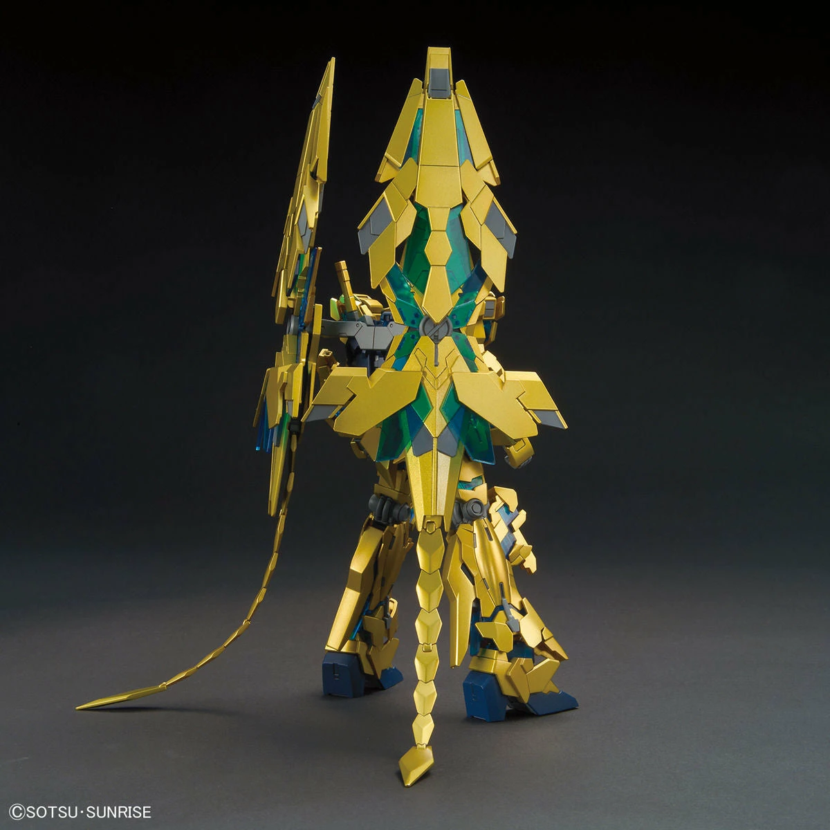 HGUC Unicorn Gundam 03 Phenex is molded in metallic gold coloring for its outer armor and translucent blue plastic for the Psycho Frame. It includes Beam Magnum and detachable tails.