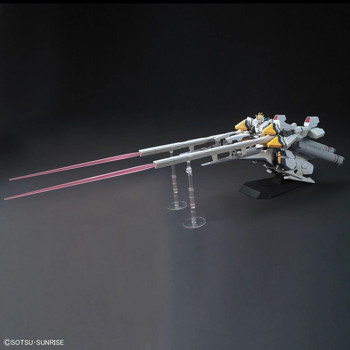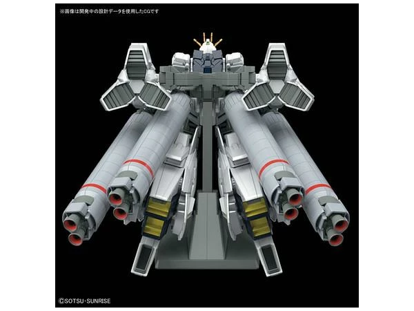 A test type unit created exploring technologies that would eventually lead to the Nu Gundam, the Narrative Gundam from “Gundam NT” is featured here with its A-Packs equipment used in Operation Phoenix Hunt.” Narrative features new articulation gimmicks in its construction and features a large amount of detail from molded missiles in the missile pod hatches to large propllant tanks and beam effects. Included are 2 beam sabers, dedicated display stand, stands for its cannons, and effect parts.