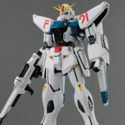 The F91’s face open gimmick has been implemented and can split open to the sides or displayed with a solid piece. Shoulder fins and leg thrusters have a deployment mechanism allowing for various angle adjustments.