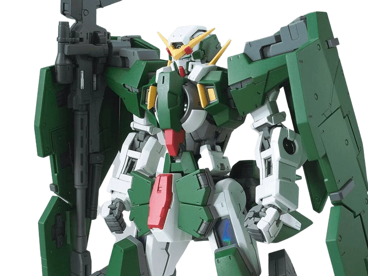 This kit features a head gimmick with pop down camera, unfolding GN Full shields, open missile hatches in waist and knee parts, and deployment gimmick of rear GN thrusters. Includes GN Sniper Rifle with Tripod unfolding mechanism, GN Beam Pistols.