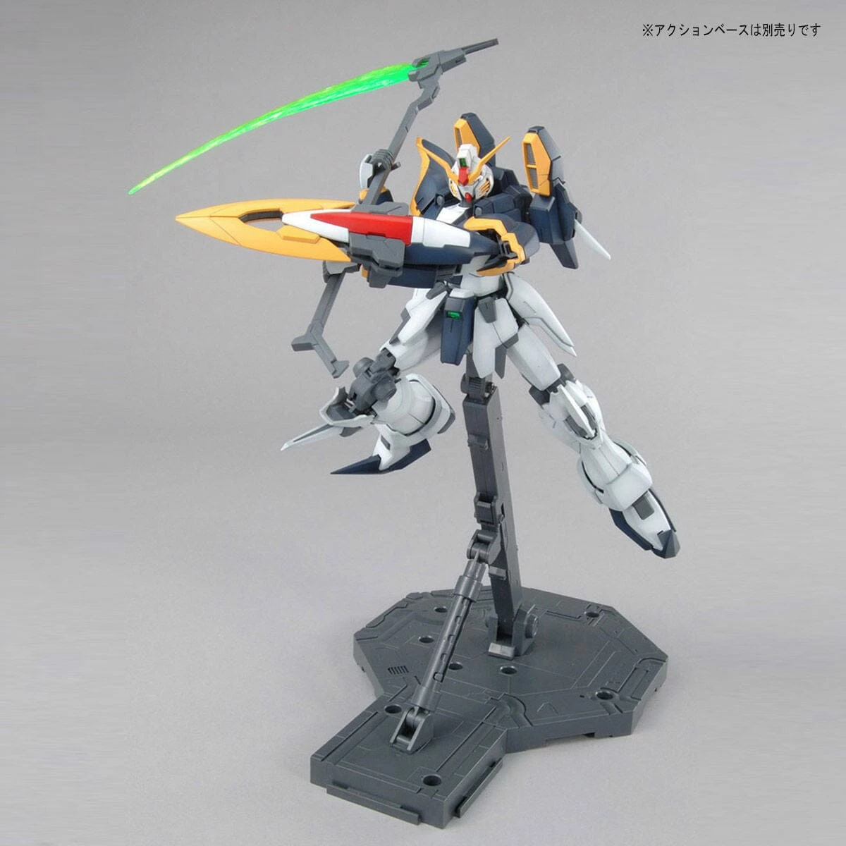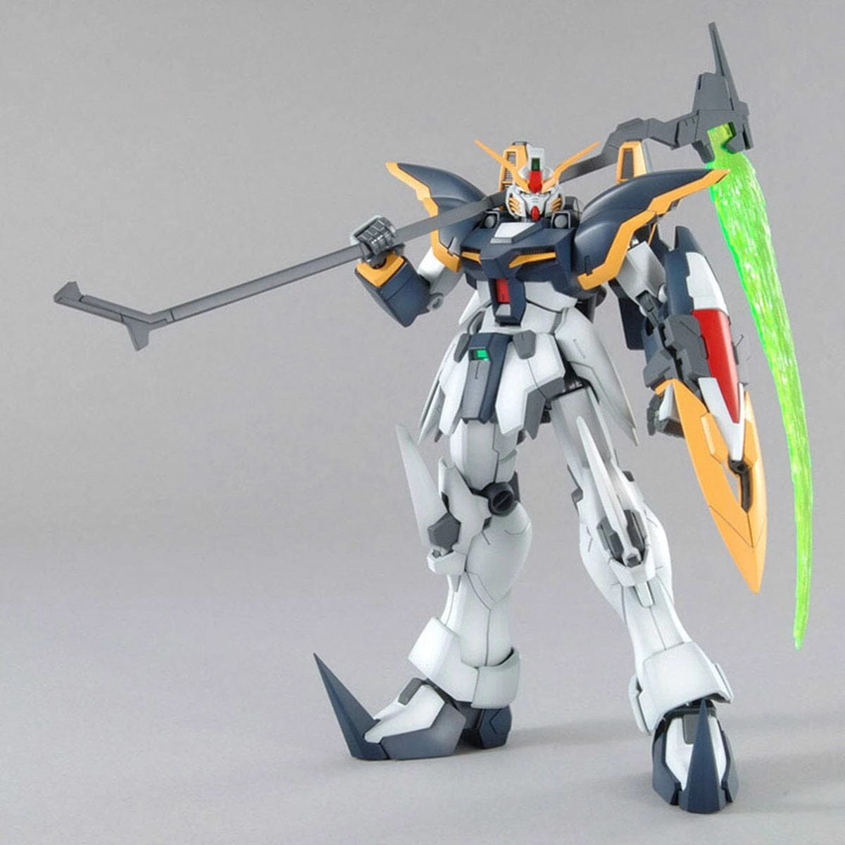 Gundam Deathscythe is in the 1/100 Master Grade scale and functions as a fully articulated figure once complete. As seen in Gundam Wing: Endless Waltz, Gundam Deathscythe features a unique white color scheme and can be armed with its beam scythe and buster shield.