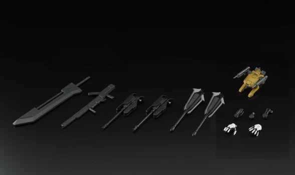 Here’s the first MS Option Set from Season 2 of Iron Blooded Orphans! It includes 2 200mm cannons, 2 small maces, Tekkadan Mobile Worker, long rifle, buster sword, and additional joint and hand parts for the new Barbatos!