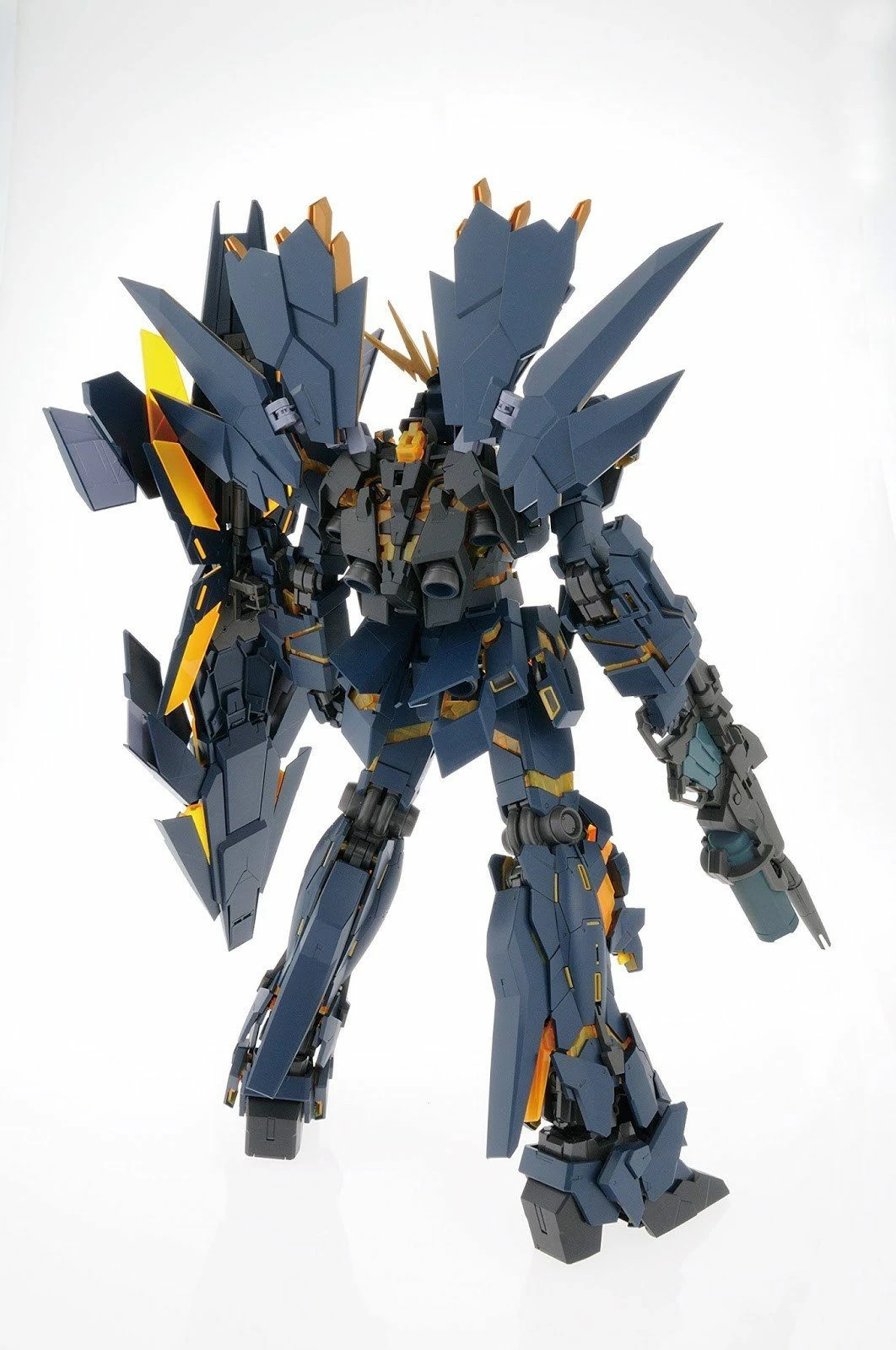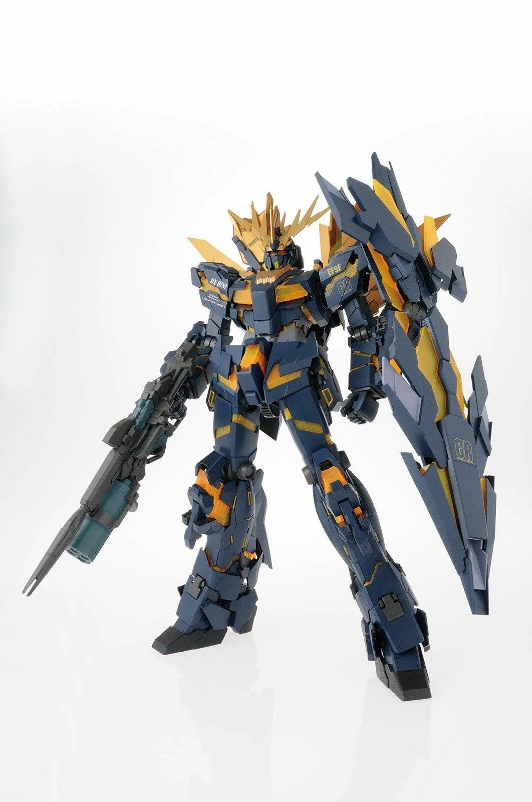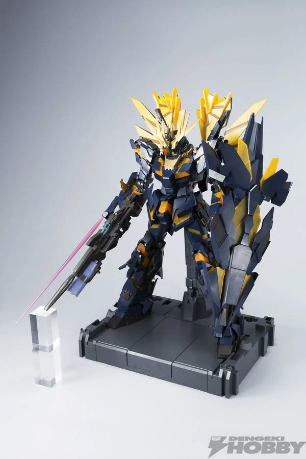 The final configuration of the Banshee from 7 episode OVA “Gundam UC,” receives the Perfect Grade treatment! A massive 15” tall, it is capable of transformation from Unicorn Mode to Destroy Mode. It has been engineered to also replicate its massive range of movement while still maintaining its iconic proportion and look. Other features include the use of magnets for its transforming horn, a full armament of weapons including beam magnum with revolving launcher, Armed Armor DE shield system that can also be mounted on backpack, beam sabers, Display stand included.