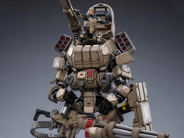 Joy Toy’s military vehicle series continues with the Iron Wrecker 04 Heavy Firepower Mecha and pilot figure! Each 1/25 scale articulated military mech and pilot features intricate details on a small scale and comes with equally-sized weapons and accessories.