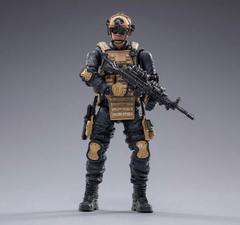 From Joy Toy, this Police Automatic Rifleman figure is incredibly detailed in 1/18 scale. It is highly articulated and includes weapon accessories as well as several pieces of removable gear.