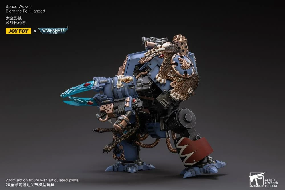 Interred in a custom-built Dreadnought, Bjorn is a legendary figure amongst the Space Wolves, for he fought in the Horus Heresy amongst the retinue of Leman Russ himself. Bjorn the Fell-Handed is the oldest warrior in the Imperium, serving first as a warrior, then as Wolf Lord, and finally a Dreadnought, to this day he is the spiritual and moral compass for the entire Chapter. This 1/18 scale fully articulated figure stands approximately 7.6″ tall.