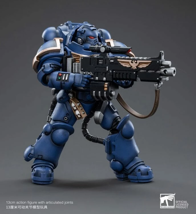 Joy Toy brings the Ultramarines Heavy Intercessors from Warhammer 40k to life with this new series of 1/18 scale figures! Detailed to hold key objectives under heavy enemy bombardment, these Ultramarines battle to the death rather than give an inch of ground. Each figure includes interchangeable hands and weapon accessories and stands between 4″ and 6″ tall.